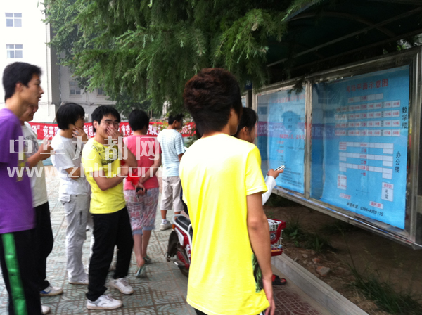 上圖:考生們陸續(xù)到所屬考點(diǎn)查看考場(chǎng)平面示意圖?! ?記者 王映攝)