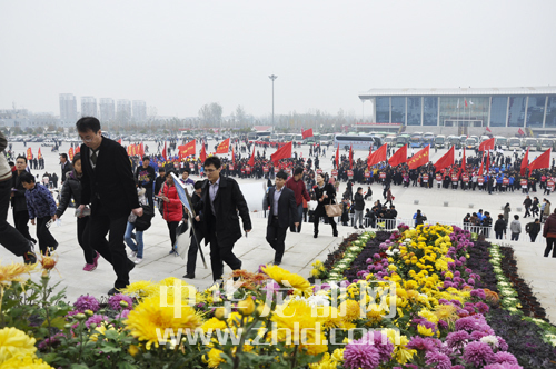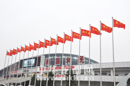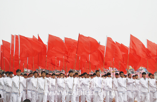 紅旗迎風(fēng)飄揚(yáng)。