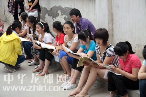 考生等待進場前許多學生突襲溫習