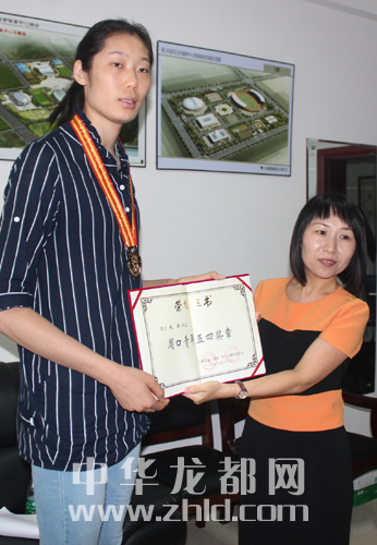 團(tuán)市委為朱婷頒發(fā)榮譽(yù)證書(shū)