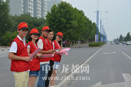 ????7月9日,周口市公安局文昌分局組織30名青年志愿者走上街頭,開展各項志愿服務(wù)活動,助力省級文明城市創(chuàng)建工作。圖為青年志愿者走上街頭發(fā)放宣傳頁,宣傳交通法規(guī)。