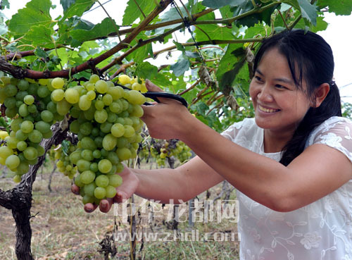 ????金秋送爽,一名游客在玉桂千畝生態(tài)葡萄園采摘葡萄。近年來,我市積極推進農(nóng)業(yè)示范園建設(shè),打造了玉桂千畝生態(tài)葡萄園等一批特色農(nóng)業(yè)基地,創(chuàng)新農(nóng)業(yè)旅游融合發(fā)展思路,引導(dǎo)特色農(nóng)業(yè)基地開發(fā)建設(shè),取得了良好效果。據(jù)了解,玉桂千畝葡萄園堅持走規(guī)?;?、生態(tài)化、精品化、綠色化的路子,15種國內(nèi)優(yōu)質(zhì)葡萄品種可持續(xù)采摘至9月中下旬。