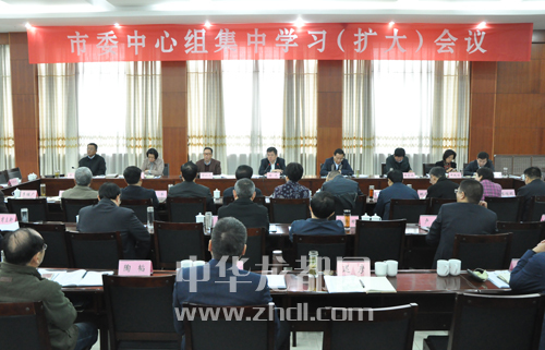 市委中心組集中學習(擴大)會議現(xiàn)場。記者 王映 攝