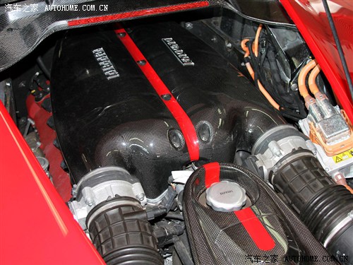 ??? LaFerrari是法拉利歷史上制造的首款采用HY-KERS系統(tǒng)的車型。內(nèi)燃機(jī)代表了引擎研發(fā)領(lǐng)域的巔峰之作,其6262cc V12發(fā)動(dòng)機(jī)可輸出800CV的功率,而最大轉(zhuǎn)速可達(dá)9250rpm,創(chuàng)造了同排量引擎的轉(zhuǎn)速記錄。此外,這款發(fā)動(dòng)機(jī)具有13.5:1的超高壓縮比以及相當(dāng)于每升排量128CV的出色動(dòng)力輸出。加上電動(dòng)機(jī)的120KW(163CV),總功率高達(dá)963CV。