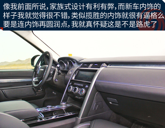 內(nèi)飾趨向家族化設(shè)計,與攬勝的內(nèi)飾差不多。特別是在內(nèi)飾的做工和用料依舊保持了奢華的質(zhì)感,只是多了些簡約的味道。高級的材料隨處可見,讓我經(jīng)?;秀蔽沂遣皇情_錯了車,這樣的后果很明顯,讓我對它感覺會越來越溫柔,要是開著它去與風(fēng)沙、泥土、亂石或大漠相約,我怎么能舍得?