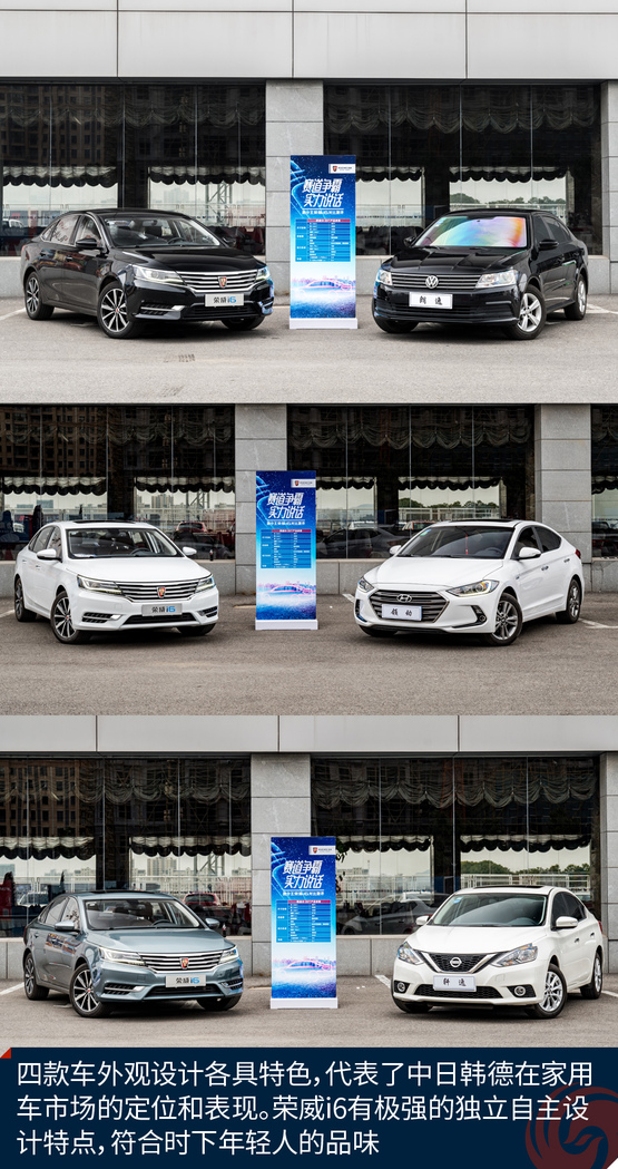鳳凰汽車·搶先試駕?榮威i6可以說打響了互聯(lián)網(wǎng)家轎的第一槍,它是繼RX5之后,榮威旗下的第二款重量級(jí)產(chǎn)品,延續(xù)了榮威RX5家族律動(dòng)美學(xué)的優(yōu)良基因。上市十天訂單便突破萬輛大關(guān),是一款非常有潛力挑戰(zhàn)合資競品的車型。但是光說不練,假把勢。今天我們就在江蘇萬馳的賽道場地內(nèi),特意選取了同級(jí)合資老炮軒逸16款1.6LXV CVT智享版、朗逸17款1.6L自動(dòng)舒適版、領(lǐng)動(dòng)?16款 1.4T 雙離合炫動(dòng)?精英型,和榮威i6 20T互聯(lián)網(wǎng)智尊版做個(gè)對(duì)比,看看這些銷量過萬的合資家轎與新晉的小鮮肉榮威i6到底誰更勝一籌?