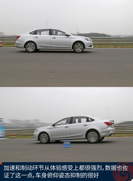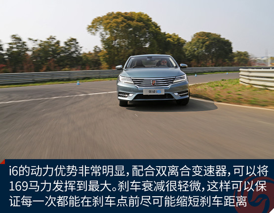 在動(dòng)力方面,榮威i6搭載了上汽“藍(lán)芯”SGE 20T發(fā)動(dòng)機(jī),采用缸內(nèi)中置直噴渦輪增壓、高效氣門配氣機(jī)構(gòu)等國際領(lǐng)先技術(shù),配合TST 7速雙離合變速器,榮威i6最大功率169馬力,比朗逸、軒逸和領(lǐng)動(dòng)分別高出了59馬力、43馬力、39馬力。而實(shí)際測試中也證實(shí)了這一點(diǎn),榮威i6在加速和剎車方面確實(shí)領(lǐng)先于競品車型。7.88秒的0-100km/h的加速成績確實(shí)讓人大吃一驚,榮威i6表現(xiàn)出了極高的運(yùn)動(dòng)化調(diào)教。剎車方面,榮威i6也表現(xiàn)相當(dāng)出色,36.59米的剎車距離,可以跟一些性能車相提并論。300mm的通風(fēng)剎車片功不可沒,整個(gè)制動(dòng)過程有力平穩(wěn),車身懸掛對(duì)于點(diǎn)頭的抑制也很到位。