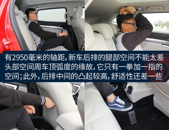 體驗(yàn)者身高175厘米,前排座椅降到最低的時候頭部還有比較充足的余量,完全不會感覺到壓抑;不過后排頭部就不太行了,頭部距離車頂非常接近,要是身高再高一些的乘客坐進(jìn)后排,已經(jīng)基本上快頂?shù)筋^了。儲物空間中規(guī)中矩,基本上沒有太多讓人驚喜的地方。扶手箱的空間不小,高度也合適,可以放些雜物。