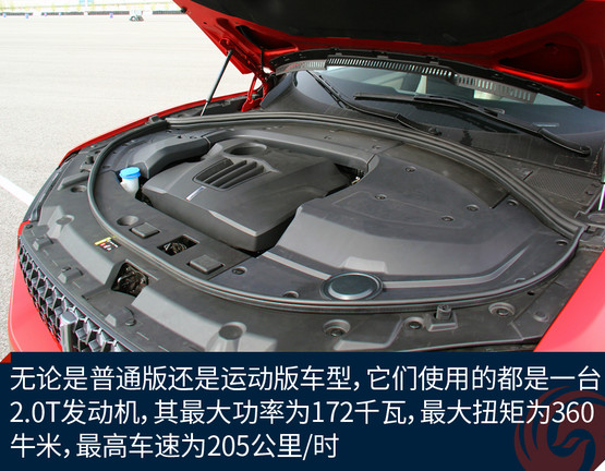 普通版和運(yùn)動版車型只提供一套動力系統(tǒng),發(fā)動機(jī)是一臺2.0T直噴發(fā)動機(jī),技術(shù)上采用了雙流道渦輪增壓以及缸內(nèi)直噴技術(shù);其最大功率為172千瓦,最大扭矩為360牛米,這臺發(fā)動機(jī)跟哈弗H7上的是一樣的。變速箱方面,新車匹配的是長城自主研發(fā)的7擋濕式雙離合變速器。