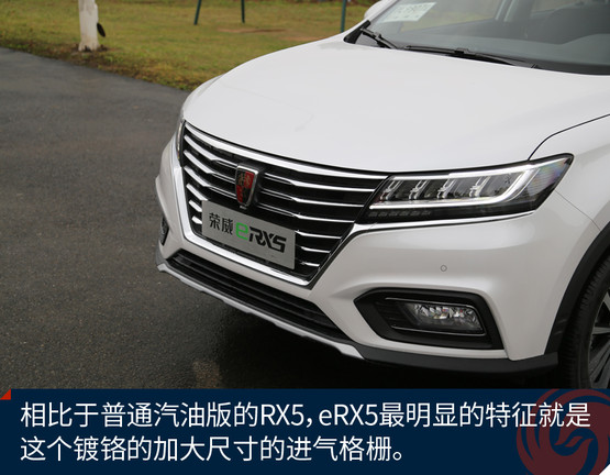榮威eRX5的外觀設(shè)計來自于上汽榮威家族最新的“律動設(shè)計”語言,整體外觀呈現(xiàn)出的是“鯨頭燕尾”的特點(diǎn)。通過車頭下壓、腰線勾勒、尾部內(nèi)切等設(shè)計,詮釋了“律動”的美學(xué)理念。與汽油版RX5相比,車頭的鍍鉻前格柵尺寸更加大,造型更為舒展,與大燈融為一體。eRX5基于RX5采用的SSA+平臺打造,提供了插電版與純電版兩個版本,這兩款車實(shí)際幾乎是同時開發(fā)的,尺寸方面更是一模一樣。插電版的eRX5車身兩側(cè)分別為加油口和充電口,純電動續(xù)航60公里,綜合續(xù)航650公里。車身隨處可見新能源的標(biāo)識,并且還擁有新能源的專屬顏色銀葉金。