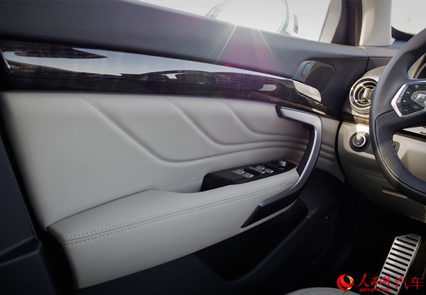 再細(xì)看VV7的內(nèi)飾做工與用料,能發(fā)覺(jué)它確實(shí)很用心。不僅中控臺(tái)質(zhì)感不錯(cuò),在車門板內(nèi)側(cè)各處也采用了材質(zhì)細(xì)膩的皮質(zhì)包裹層,門把手、按鍵都透露出精致感。WEY這款方向盤(pán)非常粗壯,包裹的皮質(zhì)手感很好,不過(guò)按鍵的布局和標(biāo)注并不能讓你一下就明白操作,需要適應(yīng)。