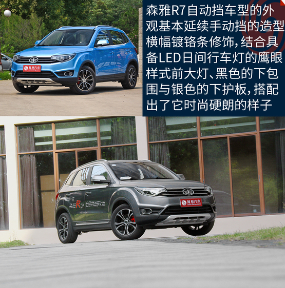 森雅R7手動(dòng)擋車型的上市時(shí)間的時(shí)間在4月27日,而自動(dòng)擋車型在11月7日下線,11月18日正式上市;在整體的外感與車身尺寸上,兩者基本沒有什么變化。前臉格柵采用橫幅鍍鉻條修飾,結(jié)合具備LED日間行車燈的鷹眼樣式前大燈、黑色的下包圍與銀色的下護(hù)板,搭配出時(shí)尚硬朗的風(fēng)格造型。在車身尺寸上,它的長寬高分別為4305×1780×1655毫米,軸距為2600毫米。