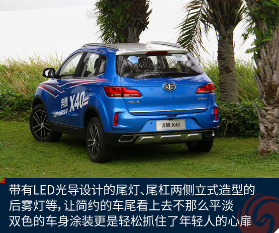 奔騰X40定位于一款小型SUV,雖然家族式的六邊形格柵線條依然有點生硬,但頗具馬自達(dá)神韻的大燈、帶有京劇臉譜線條的前臉、時尚前衛(wèi)的雙色車身等,都讓它向目前大家更看重的顏值路線更近一步。能在第一眼抓住年輕人的心,這款車就成功了一半。