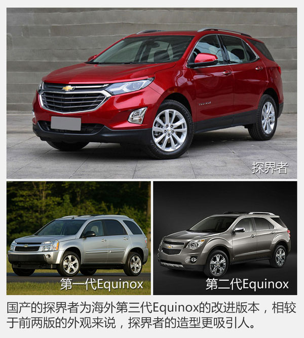 探界者其實并非科帕奇的換代車型,而是完完全全的一款全新車型,國產探界者也并不是第一次出現(xiàn)在世人面前;探界者早在北美市場供應,名為Equinox的它是通用汽車在北美市場最受歡迎的車型之一。這次引入國內的探界者已經是它的第三代車型,而第二代在整個北美市場位列全部車型銷量榜的第15位,可見其可靠的實用性和較高的性價比受到了多大的認可。