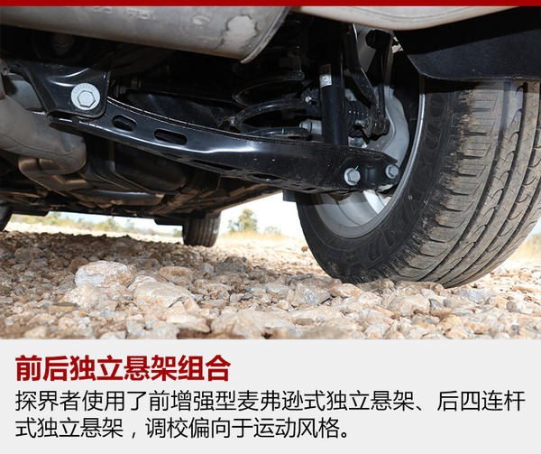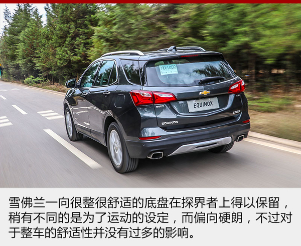 探界者的底盤受到雪佛蘭運動傾向的影響,被調校的有些偏硬,這樣對于車身側傾的抑制就非常到位,面對路面上連續(xù)的起伏,緊致的懸架也帶來很強的整體感。但是當面對較大的顛簸或者減速帶一類的時候,車身就會產生彈跳的感覺,而且懸架的回彈稍有延遲,總有一次小幅度的二次彈跳,稍稍影響了舒適性。