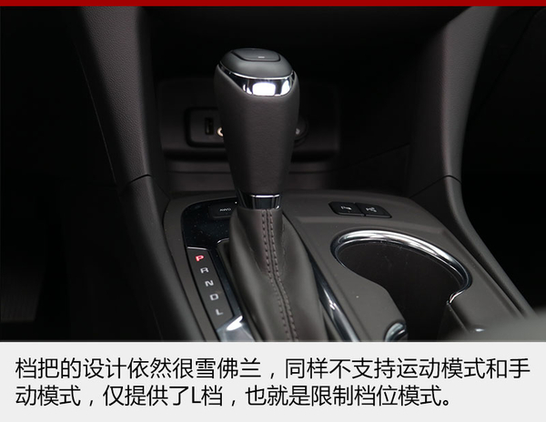 有一點我不是很明白,雪佛蘭最新的設計理念已經開始向運動發(fā)展,但是它旗下的車型都不帶有運動模式和手動換擋模式,僅僅是提供了L檔,也就是所謂的限位檔,通過檔把上方的加減按鍵可以手動使變速箱限制在相當?shù)臋n位上,D檔模式下此按鍵無效。