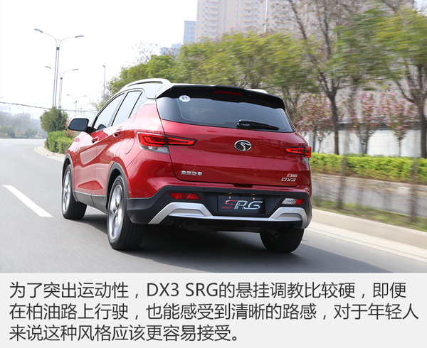 東南DX3 SRG很明顯是為85后年輕群體打造的一款車,雖然它的最終用戶不一定是年輕人,但不可否認(rèn)東南DX3 SRG是同級(jí)中顏值頗高的一員,無論從哪個(gè)角度都足夠讓人驚艷;試駕活動(dòng)中全新的動(dòng)力組合非常出色,尤其是底盤調(diào)教給我留下了深刻的印象,這對(duì)于年輕消費(fèi)者來說無疑是個(gè)利好的期待,作為10萬元級(jí)別SUV,DX3 SRG有很強(qiáng)的實(shí)力與競(jìng)品爭(zhēng)奪市場(chǎng)。(圖/文 張嘉文)