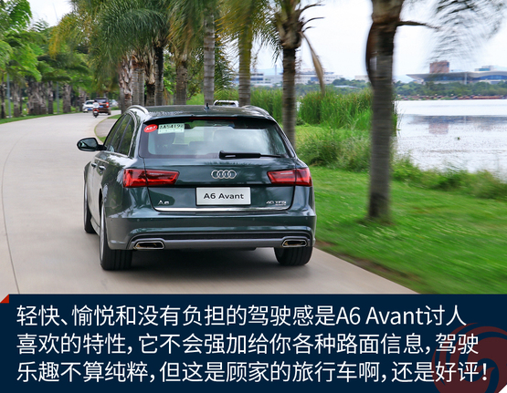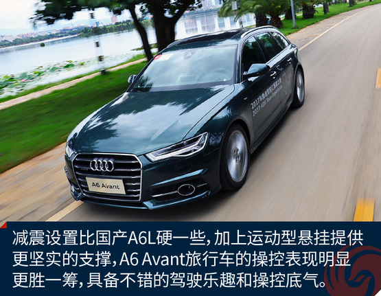 ????????作為原裝進(jìn)口車,奧迪A6 Avant的底盤懸掛設(shè)定不像國產(chǎn)奧迪A6L那種偏向關(guān)照后排的VIP,再加上標(biāo)配運(yùn)動型懸掛縮減了懸掛行程,A6 Avant旅行車開起來明顯比A6L來的犀利和動感,我并不是說它像RS 6 Avant那樣有種讓人上癮而無法自拔的“毒力”,但作為一臺有著濃郁個人主義色彩又需要兼顧全家使用的車型,奧迪A6 Avant是那種該穩(wěn)就穩(wěn),要快也能快的理想設(shè)定。
