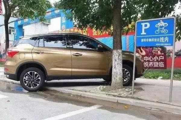 ????除了常見的半側車輪騎馬路牙子外,上圖中這種前后車輪騎馬路牙子的停車方式也不可取。