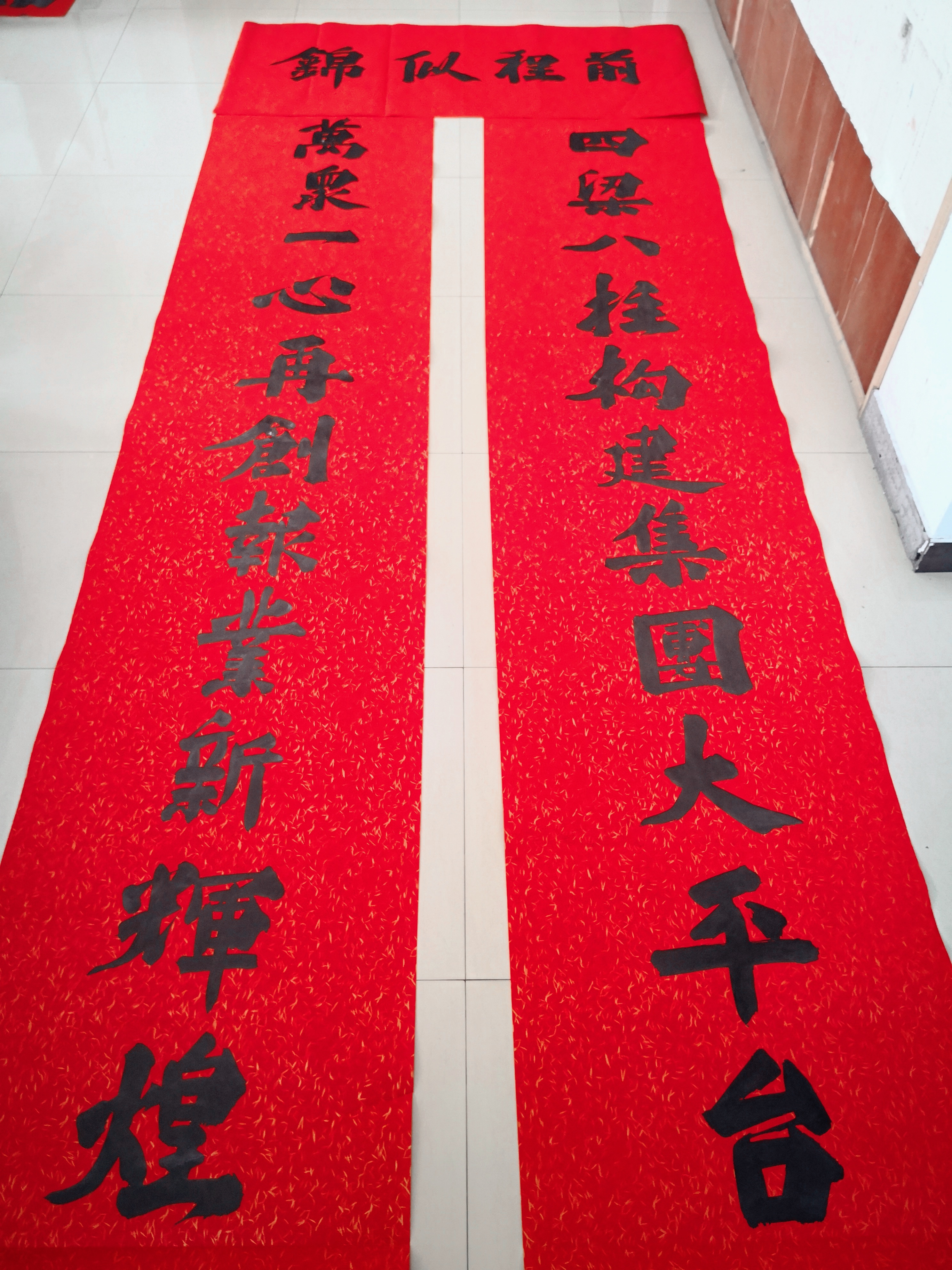 中華龍都網(wǎng)訊(周口報(bào)業(yè)全媒體記者 王晨)無(wú)聯(lián)不成春,有聯(lián)春更濃。2月3日,青年書(shū)法家邢懷章潑墨揮毫,為周口報(bào)業(yè)傳媒集團(tuán)書(shū)寫(xiě)巨幅春聯(lián),字大如斗,給周口報(bào)人送去新春祝福。