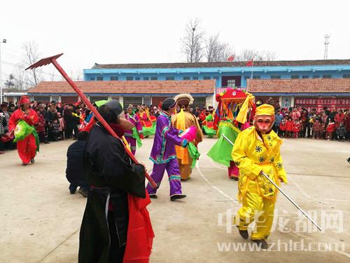 “前幾年農(nóng)閑真是把人閑得心慌,每天都是吃飽等餓、仰著臉上曬日頭?,F(xiàn)在黨的政策好,幫俺提起了精氣神兒,俺村20多個老頭老太太組成一支竹馬旱船腰鼓花棍廣場舞隊,年輕的時候會一點,現(xiàn)在見演出就來學一點,上一次李全林縣長晚上住俺這里幫扶,在俺這里看演出,說俺也成專業(yè)隊了?!边@個群眾隊的隊長是78歲的羅有德、扮相是孫悟空,旱船里的“花媳婦”是80歲的郭蘭英。連續(xù)15分鐘的蹦跳表演之后摘掉面具接受記者采訪時,群眾們都不敢相信他們這么大年齡還跳得這么起勁兒。“你們的演出隊名字太長了”記者說,“哈哈哈哈,俺老頭老太太都是‘三板斧’,也不會起名字,會的這幾招兒都寫到名字上了?!绷_有德、郭蘭英大笑著回答。
