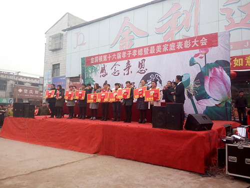 重德尚禮、孝敬父母一直以來都是中華民族傳統(tǒng)美德,是子女義不容辭的責(zé)任,是人類道德的基石,是中華民族引以為豪的寶貴財(cái)富。多年來,韭園鎮(zhèn)黨委、政府高度重視精神文明建設(shè)工作,積極組織,深入宣傳,已經(jīng)連續(xù)16年成功舉辦“孝子孝媳”評(píng)選表彰活動(dòng)。此項(xiàng)活動(dòng)不僅增強(qiáng)了全鎮(zhèn)群眾弘揚(yáng)正氣,發(fā)揚(yáng)傳統(tǒng)美德的積極性,更為韭園鎮(zhèn)的經(jīng)濟(jì)發(fā)展、精神文明建設(shè)、社會(huì)和諧穩(wěn)定營(yíng)造了良好的社會(huì)環(huán)境。胡東輝在講話中充分肯定了韭園鎮(zhèn)的精神文明建設(shè)工作,并希望能大力宣傳“孝子孝媳”和“最美家庭”的典型事跡,引導(dǎo)和教育群眾學(xué)先進(jìn)、爭(zhēng)先進(jìn)、當(dāng)先進(jìn),營(yíng)造一個(gè)尊老敬老、講公德、講文明的良好氛圍,讓文明之花在全縣處處綻放。