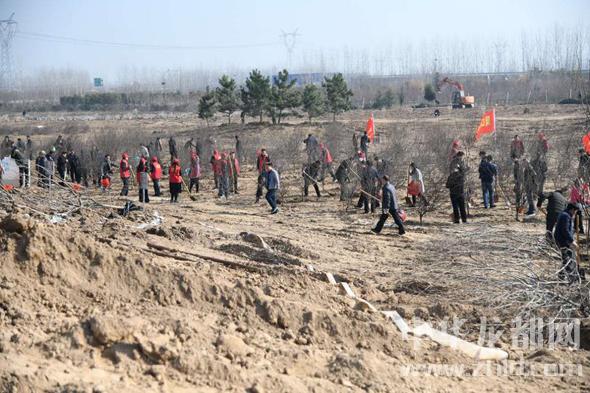 在周口森林公園植樹基地現(xiàn)場,劉繼標(biāo)、王富興、牛越麗等揮鍬鏟土填入樹坑、培實(shí)新土,各個(gè)環(huán)節(jié)大家一絲不茍、分工協(xié)作、配合默契,為周口綠色生態(tài)城市建設(shè),培植下一片片新綠。