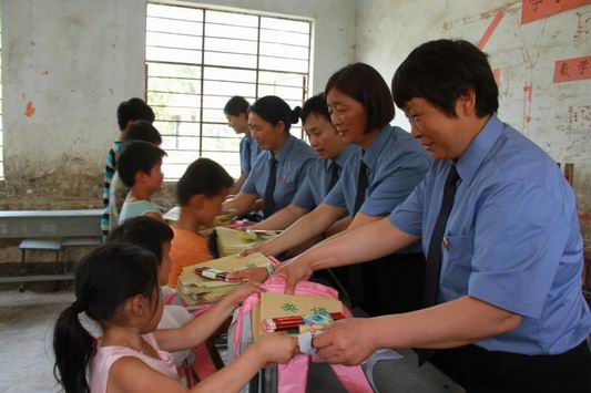 該院2013年成立了“檢察官媽媽”愛(ài)心服務(wù)隊(duì),與貧困家庭結(jié)成對(duì)子,一對(duì)一的幫扶,為貧困的留守兒童解決生活、學(xué)習(xí)上的實(shí)際困難。每年的“六 一”兒童節(jié)、中秋節(jié)、春節(jié)期間慰問(wèn)貧困兒童,給他們帶去學(xué)習(xí)用具、衣物為他們表演自編自演的節(jié)目。女檢察官們用女性特有的細(xì)心、耐心和愛(ài)心,不但在物質(zhì)上給予幫助,在心靈上給予關(guān)懷,讓他們?cè)陉?yáng)光下健康快樂(lè)的成長(zhǎng)。