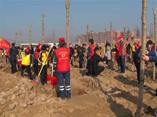 在大家的辛勤勞動下,現(xiàn)場栽種的樹苗在春風(fēng)里亭亭玉立、錯落有致,為項城市增添了一道靚麗風(fēng)景。