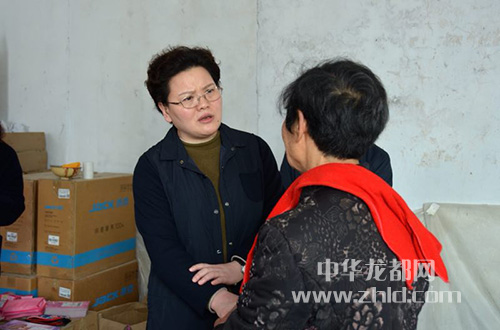 其中的一位大娘凝神看著張穎波好一會兒,一把拉住了她的手,“你不是那誰嗎?你看我,名字都到嘴邊上了,咋就喊不出來了呢!”張穎波看著滿臉著急的大娘笑了,“劉大娘,我是張穎波呀,咱去年見過面的。大叔現(xiàn)在身體怎么樣?”大娘抹上了眼淚,對張穎波說起了家里的變故,身患偏癱的老伴才走不久?!八菦]走,知道你又來看我們了,不知道該多高興!”劉大娘今年73歲,名叫劉蘭香,去年張穎波來村里慰問時專門看望了老兩口?!按竽?,您快別難受了,到這里干活也挺好,能和老姐妹們拉拉家常,調節(jié)一下心情。以后只要我來咱村了,就一定來看您,和您說說話。”