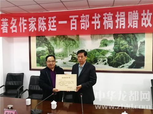 中華龍都網(wǎng)訊(周口報業(yè)全媒體記者 李瑞才 通訊員 楊光宏 文圖)4月1日上午,鹿邑籍中國著名傳記作家陳廷一百部書稿捐贈故里交接儀式,在老子故里鹿邑縣委黨校二樓會議室舉行。