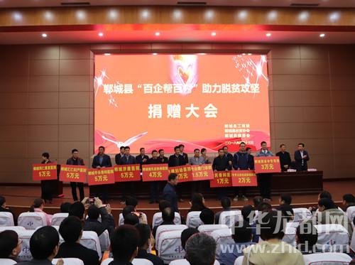 中華龍都網訊(周口報業(yè)全媒體記者 徐松 文/圖)4月13日,鄲城縣召開“百企幫百村”助力脫貧攻堅捐贈大會,全縣129家企業(yè)反哺社會助力脫貧攻堅,現(xiàn)場捐贈近1300萬元。鄲城縣四個班子領導、部分縣處級領導干部、縣慈善會會長、縣扶貧協(xié)會會長、縣直各單位和鄉(xiāng)鎮(zhèn)負責人等參加捐贈大會。縣委書記羅文閣發(fā)表講話,縣長李全林主持會議。