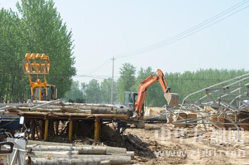 中華龍都網(wǎng)訊(周口報(bào)業(yè)全媒體記者 張勁松 通訊員 蘇千 文/圖)4月18日,東新區(qū)城管中心在該區(qū)國土局、許灣鄉(xiāng)政府的配合下,出動(dòng)執(zhí)法人員120多名,執(zhí)法車輛10輛,對(duì)許灣鄉(xiāng)程寺行政村6處違法占地、違章建設(shè)進(jìn)行強(qiáng)制拆除。