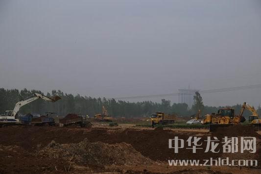 中華龍都網(wǎng)訊(周口報(bào)業(yè)全媒體記者 張勁松文/圖)4月21日上午,記者在東新區(qū)引黃調(diào)蓄施工現(xiàn)場(chǎng)了解到,截至目前,該項(xiàng)目已開挖土方79萬(wàn)立方米,遷墳682座,伐樹21578棵。當(dāng)日上午9時(shí)許,記者在施工現(xiàn)場(chǎng)看到,大型挖掘機(jī)、翻斗車把挖出的黃土拉向湖岸的位置。推土機(jī)轟鳴著在平整場(chǎng)地,酒水車在整個(gè)施工現(xiàn)場(chǎng)來(lái)回不停地奔跑降塵,整個(gè)施工現(xiàn)場(chǎng)60余臺(tái)機(jī)械來(lái)往穿梭,湖的雛形正在形成,湖的面積逐漸“長(zhǎng)”大,北岸湖堤也在逐漸隆起。