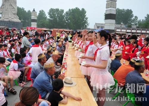 中華龍都網訊(周口報業(yè)全媒體記者 李瑞才 通訊員 胡洪濤 劉傳保/文圖)5月18日,鹿邑縣太清宮老子文化廣場內歡聲笑語、歌舞飛揚,處處洋溢著歡樂祥和氣氛,來自鹿邑縣太清宮鎮(zhèn)一所小學的500多名師生在這里為太清敬老院的40多位老人操辦集體生日,用精彩的演出恭祝他們生日快樂!