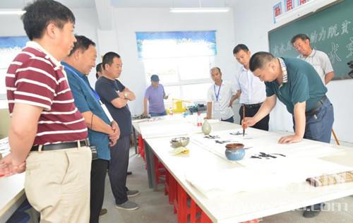本次活動(dòng)邀請(qǐng)到了當(dāng)?shù)刂麜依顕?guó)印老師和胡效鋒老師主講,商水縣文聯(lián)主席劉秋玲在活動(dòng)現(xiàn)場(chǎng)進(jìn)行活動(dòng)指導(dǎo)和藝術(shù)調(diào)研。在書法交流活動(dòng)中,書法家們與學(xué)校教師就漢字書寫和書法傳承進(jìn)行了探討,同時(shí),與當(dāng)?shù)氐臅◥酆谜哌M(jìn)行了藝術(shù)創(chuàng)作方面的交流,并對(duì)李世棟、姚海城、聞克新等人的書法作品進(jìn)行了點(diǎn)評(píng)和指導(dǎo)。