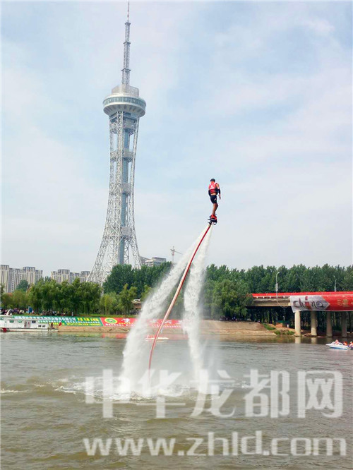 開幕式上,大賽組委會請來的“水上飛人“表演令觀眾驚嘆不已,只見一名運(yùn)動員腳下踩著特制的噴水裝置,猶如鋼鐵俠一般,從水中騰空而起,時而在半空中靜止不動,時而從空中飛魚入水,連續(xù)做出前后空翻、空中回旋、蛟龍出水等各種華麗特技,令觀眾尖叫雀躍。期間,水上兩艘快速疾飛的船模表演,以及空中翻飛自若的航模表演,都給觀眾帶來了不一樣的視覺感受。