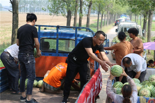 淮陽(yáng)縣文改委是馬營(yíng)村的幫扶單位。自扶貧攻堅(jiān)工作開(kāi)展以來(lái),駐村干部積極為貧困戶問(wèn)診把脈,尋求脫貧門(mén)路。駐村幫扶隊(duì)長(zhǎng)文改委副主任于樹(shù)林了解情況后,積極從中牽線搭橋,先后聯(lián)系到淮陽(yáng)姓氏城、蓮舍等愛(ài)心企業(yè),幫助瓜農(nóng)們盡快打通銷(xiāo)路,把損失降到最低。