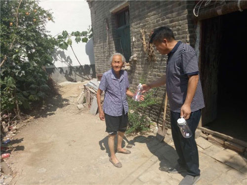 當(dāng)天,張照營冒著酷暑走遍前進(jìn)村所聯(lián)系的6戶貧困戶家中送“清涼杯”。和張照營一樣,在7月19日這天,太康縣委宣傳部、太康縣文廣新局的幫扶人員走村入戶,來到所幫扶的貧困群眾家中,開展扶貧扶志送“清涼”活動。