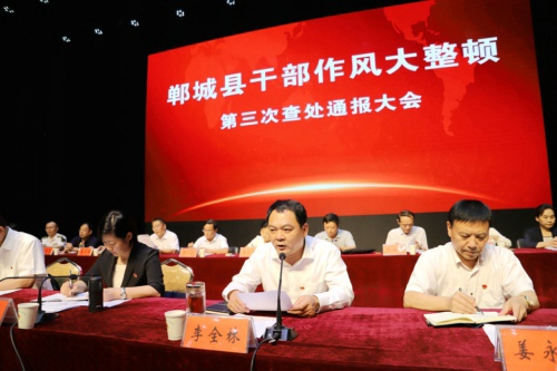 8月15日下午,鄲城縣召開干部作風(fēng)大整頓第三次查處通報大會。貫徹全市干部作風(fēng)大整頓查處通報會議精神和縣委十二屆四次全會暨縣委工作會議精神,通報典型案例,宣布處理決定,傳導(dǎo)工作壓力,夯實工作責(zé)任,為進一步推進各項工作任務(wù)落實、打好打贏脫貧攻堅戰(zhàn)提供堅強有力的作風(fēng)保障??h委書記羅文閣發(fā)表講話,縣長李全林主持。全縣副處級以上領(lǐng)導(dǎo)干部和縣、鄉(xiāng)、村各級各部門負責(zé)人參會。
