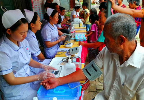 當(dāng)天一大早,村民早早地就等候在活動現(xiàn)場,每一處測量、檢查點都排起了長隊。義診中,村民仔細(xì)詢問自己的身體狀況,醫(yī)護(hù)人員都耐心地一一給予解答。 此次義診活動,共為曹堂行政村4個自然村600余名村民提供健康咨詢、健康檢查,免費贈送價值5萬余元藥品,發(fā)放宣傳手冊2000冊,受到村民們的一致好評。