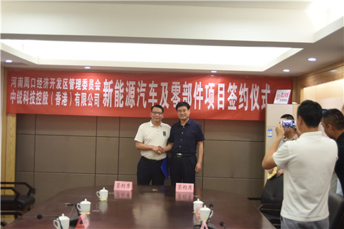 9月5日,周口經(jīng)濟開發(fā)區(qū)與中銳科技控股(香港)有限公司就新能源汽車及零部件項目建設(shè)成功簽約。開發(fā)區(qū)黨委書記田林、管委會主任王文峰、管委會副主任支利民,中銳科技控股(香港)有限公司董事長張健源、中銳電源公司總經(jīng)理王力和等出席簽約儀式。