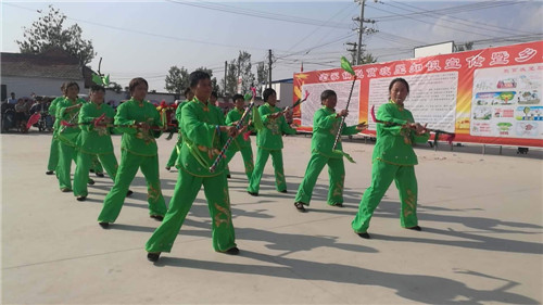 文藝匯演的節(jié)目之中,劉屯村表演的快板《咱們的生活比蜜甜》、樊莊村表演的傳統(tǒng)節(jié)目《霸王鞭》、劉屯西村表演的小品《推小車》以濃厚的生活氣息,弘揚(yáng)時代主旋律的大主題激發(fā)了現(xiàn)場觀眾強(qiáng)烈的情感共鳴,贏得了大家的陣陣掌聲,將文藝預(yù)演活動推向了高潮??彀濉对蹅兊纳畋让厶稹酚迷~質(zhì)樸、合轍押韻、朗朗上口,歷數(shù)脫貧攻堅(jiān)以來的農(nóng)村發(fā)生的巨大變化,謳歌黨的好政策,抒發(fā)了脫貧致富的喜悅心情;《推小車》則改編自現(xiàn)實(shí)生活中的真人真事,演員們通過幽默的語言、滑稽的動作,讓人們在歡笑中釋放自我、收獲感知、受到啟迪……“現(xiàn)在,俺農(nóng)民錢袋子鼓起來了,腦瓜子為啥不能‘活’起來呢?”參加文藝匯演的一位大媽高興地說,“趕上了新時代,俺們過上了好日子,就是要大聲唱出來!”