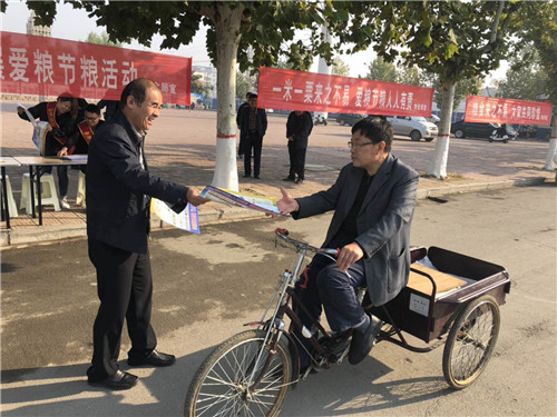 各鄉(xiāng)鎮(zhèn)糧油公司同步開展宣傳活動(dòng),設(shè)立分會(huì)場宣傳臺(tái),懸掛宣傳標(biāo)語,并組織職工到人員密集處向群眾講解國家糧食政策、糧食收購質(zhì)價(jià)標(biāo)準(zhǔn)、糧油市場信息等,讓廣大群眾了解了糧食生產(chǎn)、收獲、運(yùn)輸、保管等方面的科技知識(shí),增強(qiáng)了群眾的節(jié)糧減損意識(shí)。