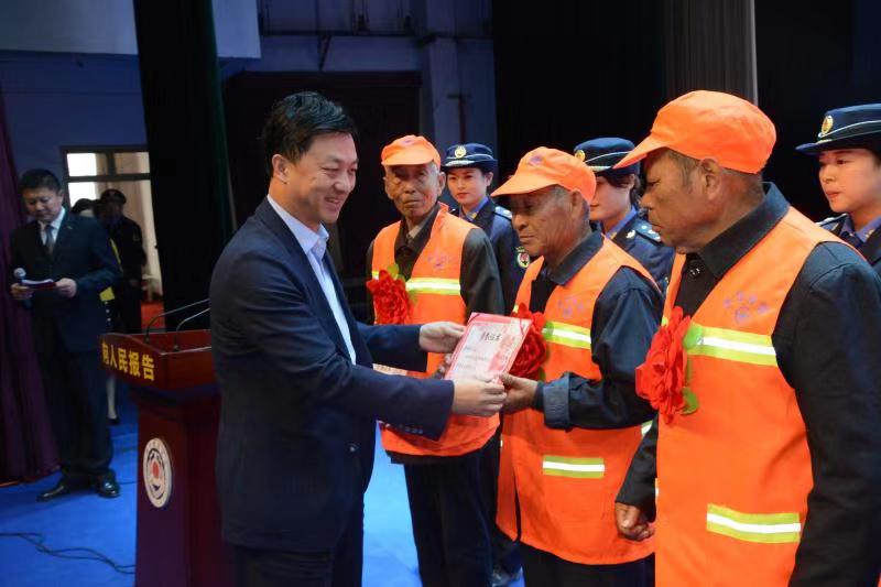 隨后,獲獎(jiǎng)環(huán)衛(wèi)工代表戴著大紅花走上主席臺(tái),接受西華縣委書記林鴻嘉的頒獎(jiǎng)?!翱h委對(duì)城市管理特別是環(huán)衛(wèi)工人們的辛苦、辛勞看在眼里、記在心里,在財(cái)力十分緊張的情況下,連續(xù)5年為環(huán)衛(wèi)工人普漲工資,每人每月增加100元。今天,我宣布:從明年元月開始,給環(huán)衛(wèi)工人再增加100元的工資?!绷著櫦魏榱恋脑捯魟偮?,臺(tái)下就爆發(fā)出長(zhǎng)時(shí)間的掌聲,有些環(huán)衛(wèi)工人一邊鼓掌一邊流淚,幸福的淚花在眼圈里打轉(zhuǎn)。