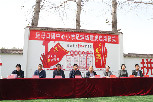 啟用儀式上,該縣遜母口鎮(zhèn)中心小學(xué)的學(xué)生們愉快地表演了足球操,少先隊(duì)員分別向領(lǐng)導(dǎo)和嘉賓佩戴紅領(lǐng)巾表達(dá)感恩之情。河南省第十三屆人大代表張華女士代表足球場(chǎng)捐建單位講話。張華說,當(dāng)前,隨著脫貧攻堅(jiān)深入開展,家鄉(xiāng)的各項(xiàng)事業(yè)蓬勃發(fā)展。作為遜母口鎮(zhèn)的一員,看到家鄉(xiāng)這些年翻天覆地的變化,感到特別喜悅。作為一名省人大代表,為助力家鄉(xiāng)脫貧攻堅(jiān),同時(shí)落實(shí)“脫貧攻堅(jiān)人大代表在行動(dòng)”號(hào)召,便決定投資50萬元為遜母口鎮(zhèn)中心小學(xué)建立一個(gè)高標(biāo)準(zhǔn)的踢足場(chǎng),滿足孩子們踢足球的愿望。