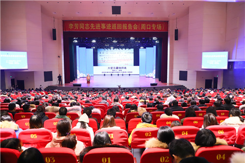12月12日上午,李芳同志先進(jìn)事跡巡回報(bào)告會(huì)(周口專場(chǎng))在周口師范學(xué)院舉行,來(lái)自全市教育系統(tǒng)的1000余名干部、教師聆聽(tīng)了李芳的先進(jìn)事跡和生活點(diǎn)滴,感受李芳高尚的師德光輝,接受心靈的洗禮。