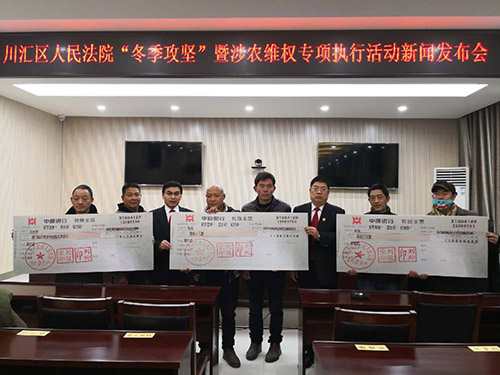 在執(zhí)行環(huán)節(jié),加大對拒不支付勞動報酬犯罪、涉農(nóng)民工工資的拒不執(zhí)行判決裁定犯罪案件的審理力度,并專門抽出精兵強將負責(zé)涉農(nóng)案件的執(zhí)行。將涉農(nóng)案件的被執(zhí)行人第一時間納入失信被執(zhí)行人名單,限制其高消費,強力敦促被執(zhí)行人履行義務(wù)。并及時在電視臺、報紙、網(wǎng)絡(luò)等各類媒體上對涉農(nóng)維權(quán)典型案例進行報道、以案說法,營造良好的社會氛圍,全力維護農(nóng)民工合法權(quán)益,取得了良好社會效果。2018年以來,川匯區(qū)法院執(zhí)行局共受理拖欠農(nóng)民工工資等涉農(nóng)維權(quán)案件233起,涉及農(nóng)民工人數(shù)271人,執(zhí)結(jié)210起,涉案標的630余萬元,為農(nóng)民工追回工資572萬元。
