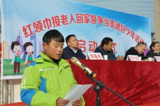 12月29日下午,在商水縣姚集鎮(zhèn)舉行的“紅領巾接老人回家暨爭當美德好少年”活動 啟動儀式上,姚集鎮(zhèn)盧廟小學六年級學生張吉慶用幼稚童音朗誦的《用愛接爺爺奶奶 回家》,感動了在場的來自各鄉(xiāng)鎮(zhèn)的數百名鄉(xiāng)村干部?!昂⒆又v的好,我們一定配合 鄉(xiāng)政府把獨居老人戶清零工作做好做實,讓老人們年年過暖冬?!睖f鄉(xiāng)中心校長戚 二中會后告訴記者。