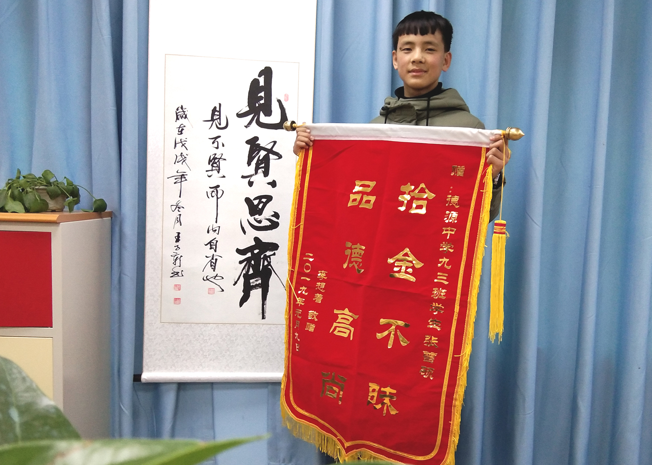 “我還以為找不回來了,里面除了錢還有那么多重要的證件,真的太重要了,我中午急著辦事情飯都吃不下!”下午3時,失主李想著手拿一面加急制作的錦旗來到學(xué)校向張曾碩和尹紀偉老師表示感謝。他說,能有這樣品質(zhì)高尚、拾金不昧的好孩子,是老師精心培養(yǎng)、父母言傳身教的結(jié)果。